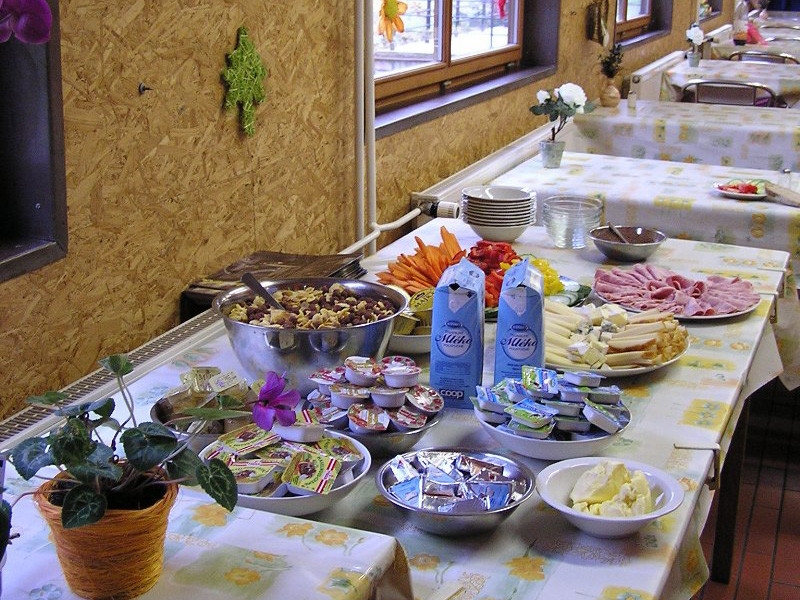 Časy jídel i skladba jídelníčku se přizpůsobují potřebám jednotlivých skupin. Součástí nabídky je vždy také varianta pro vegetariány.